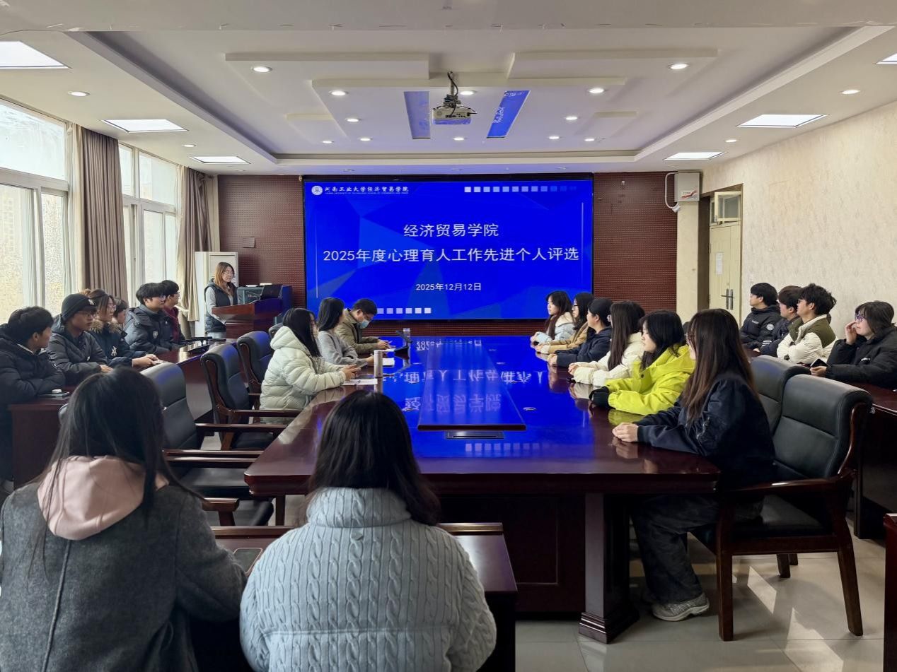 于博识楼3501教室举行2025年度心理育人工作先进个人评选答辩会。院学工办主任张福勇、团委书记王秋瑾、辅导员马上上以及参与评选的相关学生参与了此次活动,活动由马上上主持。