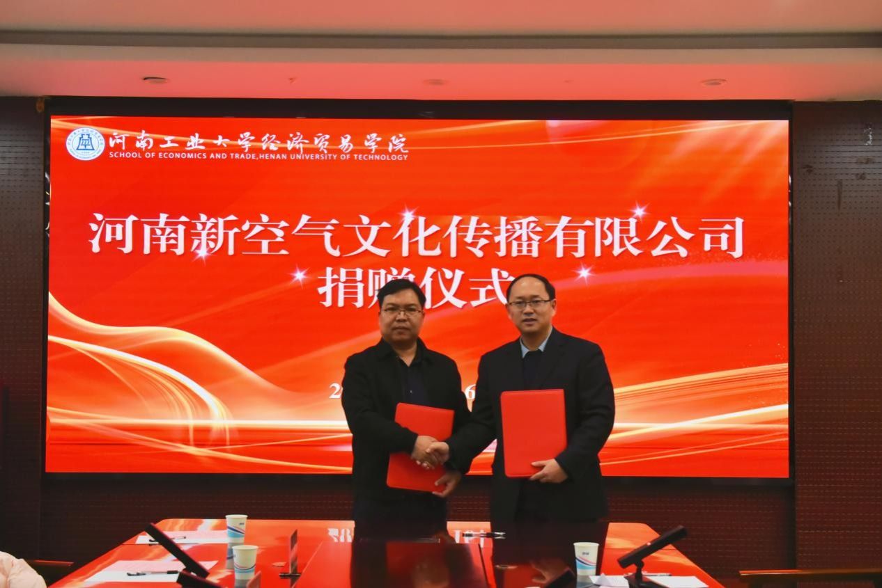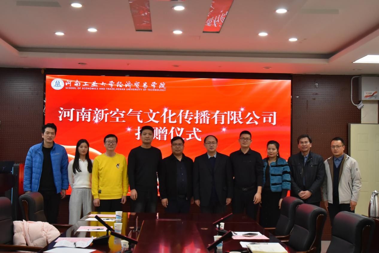 与河南新空气文化传播有限公司于博识楼3501会议室举行捐赠仪式。河南新空气文化传播有限公司董事长李建科、策划总监张胜威、行政总监刘多多,91探花