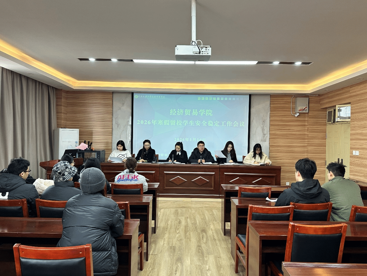 2026年寒假留校学生管理工作实施方案》。他要求全体留校学生严格遵守校纪校规和学院管理制度,保持通讯畅通,加强自我保护意识,合理安排好假期的学习与生活,确保度过一个平安、充实、温馨的寒假。随后,留校学生代表2025级研究生李菁华和经济2402班韩艺佳先后作表态发言。他们表示,感谢学院对留校学生的关心与安排,他们将自觉遵守各项管理规定,充分利用假期时间开展学术科研,同时注意人身与财产安全,积极发挥学生党员的模范带头作用。