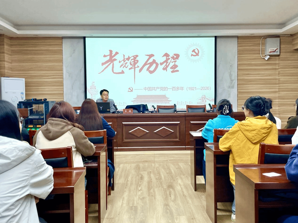 典礼后,校党委学工部部长王迪讲授专题党课《中国共产党的百年奋斗历程》,引导学员从党史中汲取智慧,坚定理想信念。